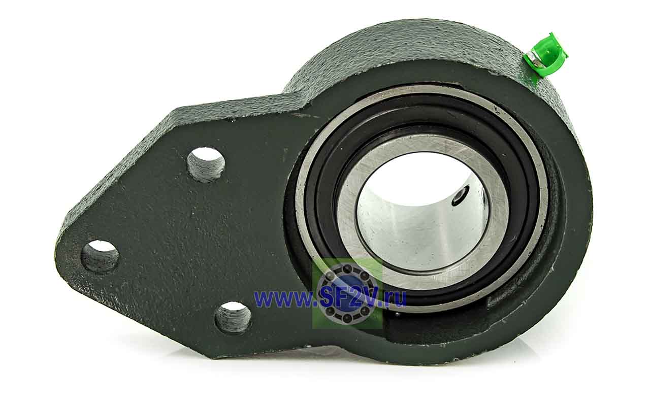 UCFB - Подшипник с корпусом в сборе. Подшипник типа UC и подшипниковый корпус типа FB - не разъемный, стационарный, фланец с тремя отверстиями для крепежных болтов, выполненный из литого чугуна, снабжен ниппелем для проведения сервисных работ по замене смазки.