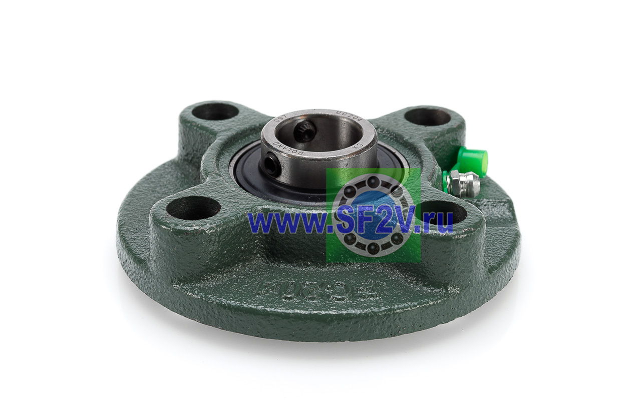 UCFC - Подшипник с корпусом в сборе. Подшипник типа UC и подшипниковый корпус типа FC - не разъемный, стационарный, фланец круглого сечения, с четырьмя отверстиями для крепежных болтов, выполненный из литого чугуна, снабжен ниппелем для проведения сервисных работ по замене смазки.