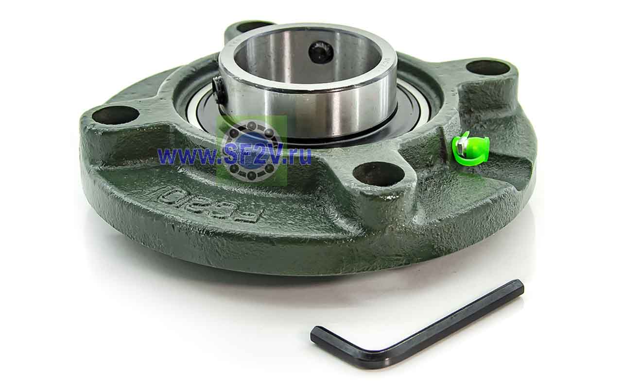 UCFC - Подшипник с корпусом в сборе. Подшипник типа UC и подшипниковый корпус типа FC - не разъемный, стационарный, фланец круглого сечения, с четырьмя отверстиями для крепежных болтов, выполненный из литого чугуна, снабжен ниппелем для проведения сервисных работ по замене смазки.
