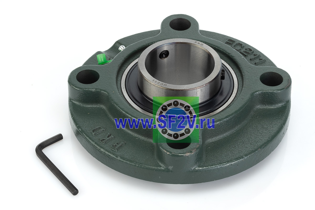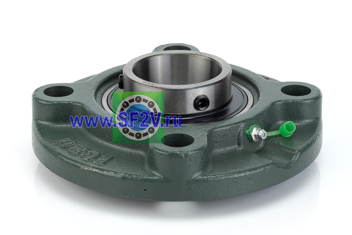 UCFC - Подшипник с корпусом в сборе. Подшипник типа UC и подшипниковый корпус типа FC - не разъемный, стационарный, фланец круглого сечения, с четырьмя отверстиями для крепежных болтов, выполненный из литого чугуна, снабжен ниппелем для проведения сервисных работ по замене смазки.