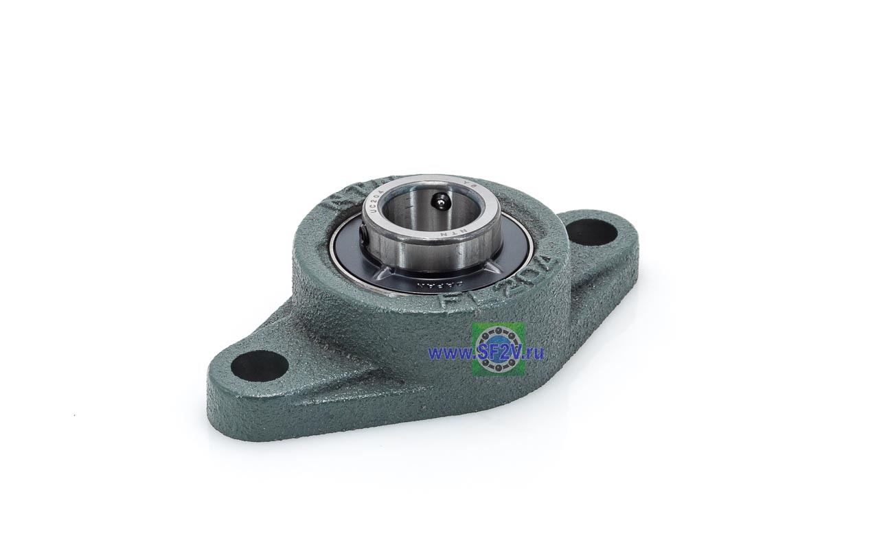 UCFL - Подшипник с корпусом в сборе. Подшипник типа UC и подшипниковый корпус типа FL - не разъемный, стационарный, фланец овального сечения с двумя отверстиями для крепежных болтов, выполненный из литого чугуна, снабжен ниппелем для проведения сервисных работ по замене смазки.