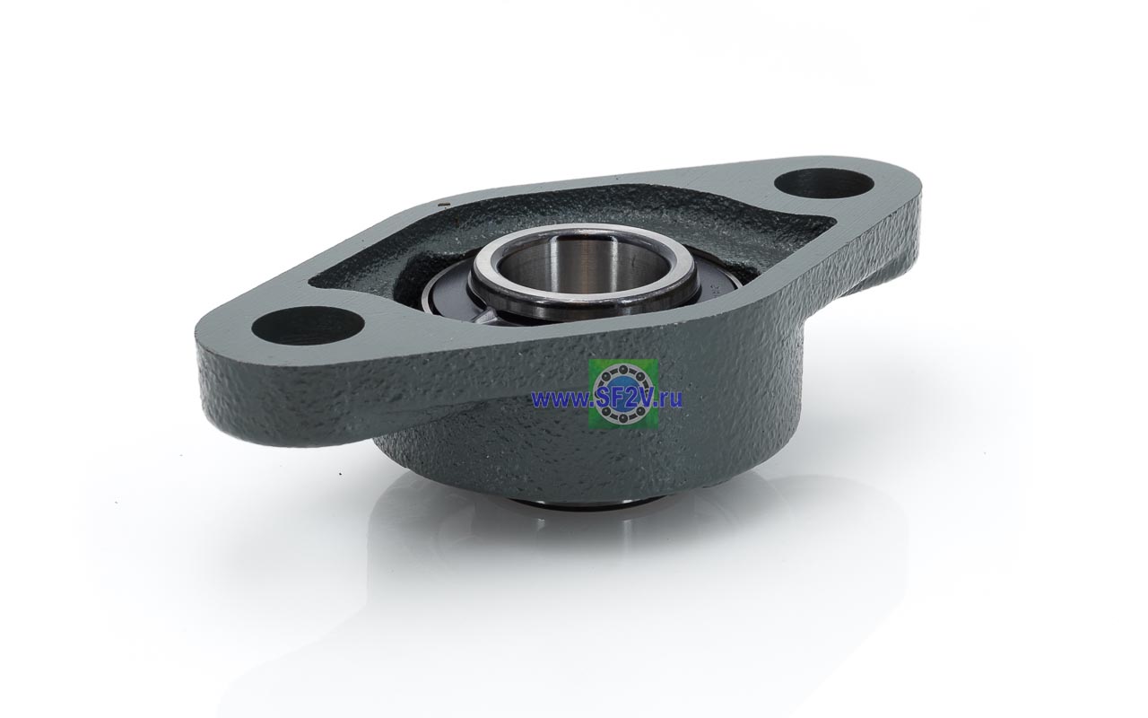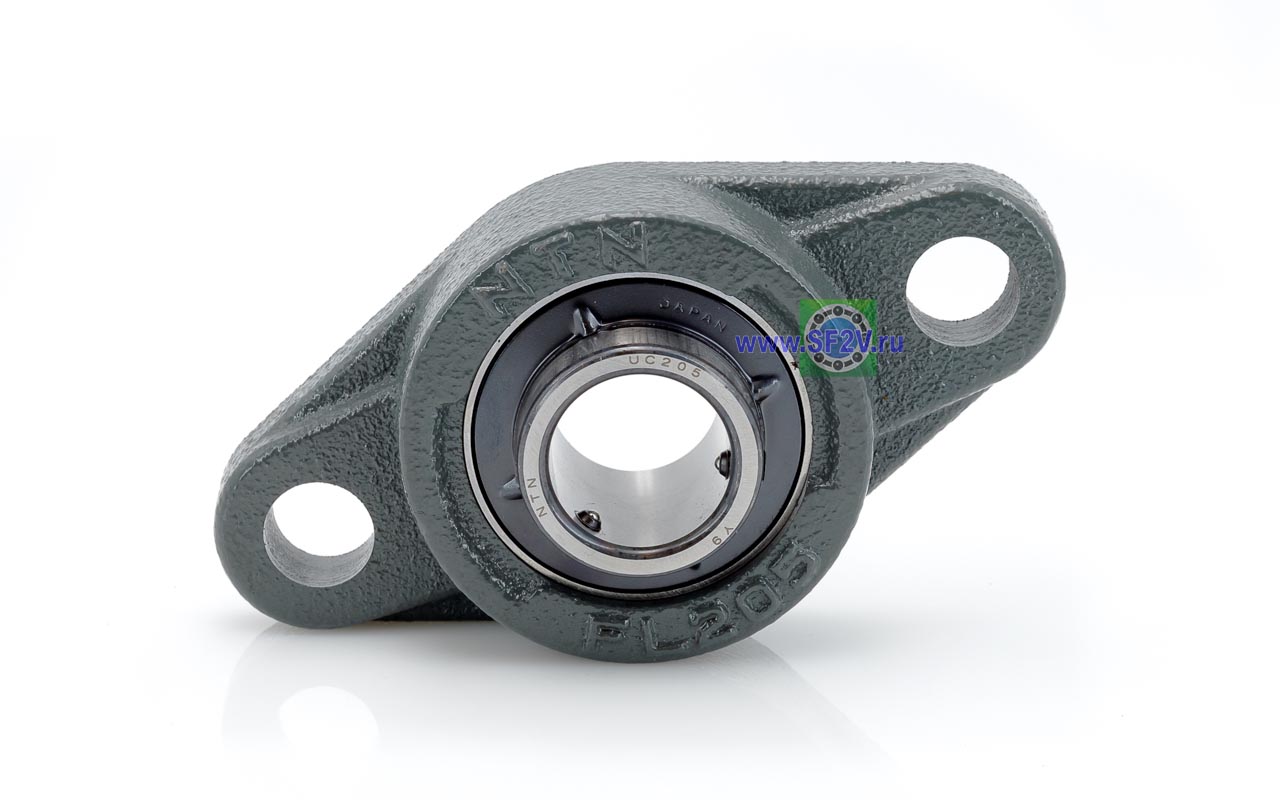 UCFL - Подшипник с корпусом в сборе. Подшипник типа UC и подшипниковый корпус типа FL - не разъемный, стационарный, фланец овального сечения с двумя отверстиями для крепежных болтов, выполненный из литого чугуна, снабжен ниппелем для проведения сервисных работ по замене смазки.