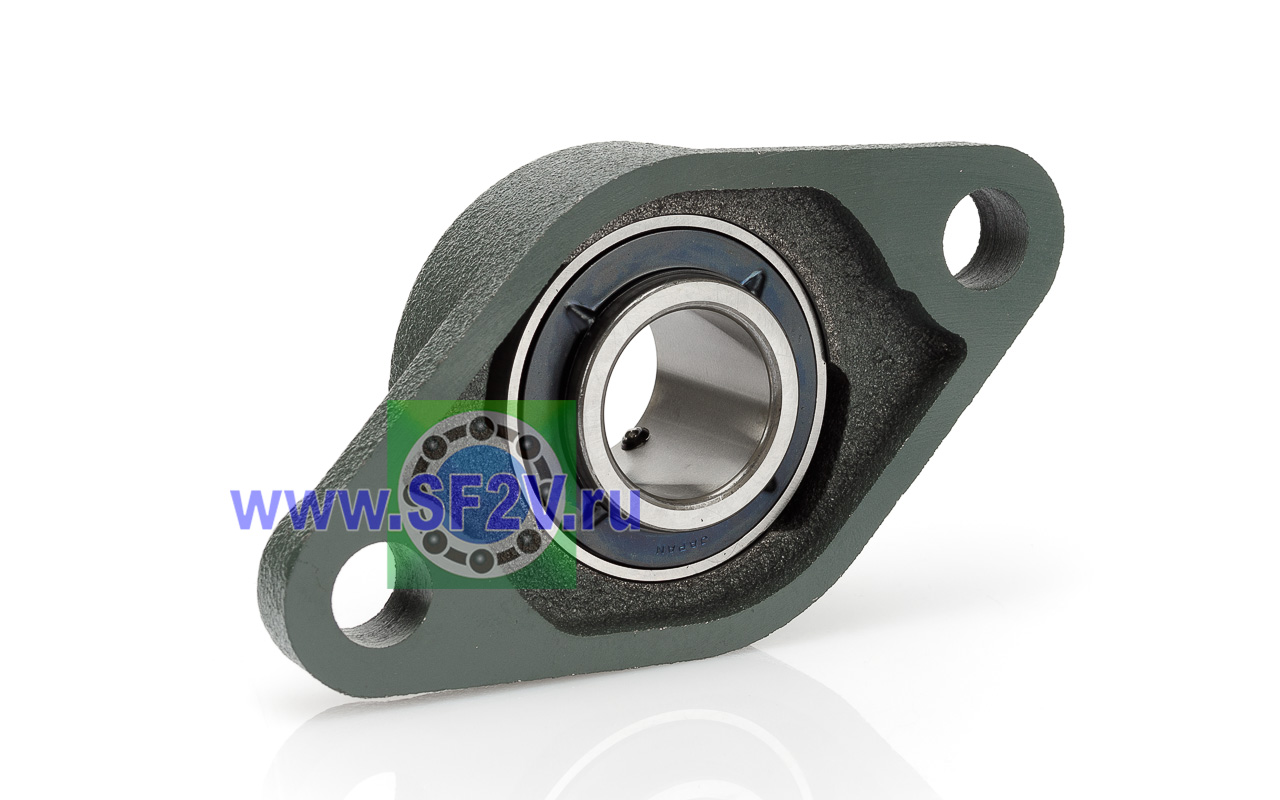 UCFL - Подшипник с корпусом в сборе. Подшипник типа UC и подшипниковый корпус типа FL - не разъемный, стационарный, фланец овального сечения с двумя отверстиями для крепежных болтов, выполненный из литого чугуна, снабжен ниппелем для проведения сервисных работ по замене смазки.