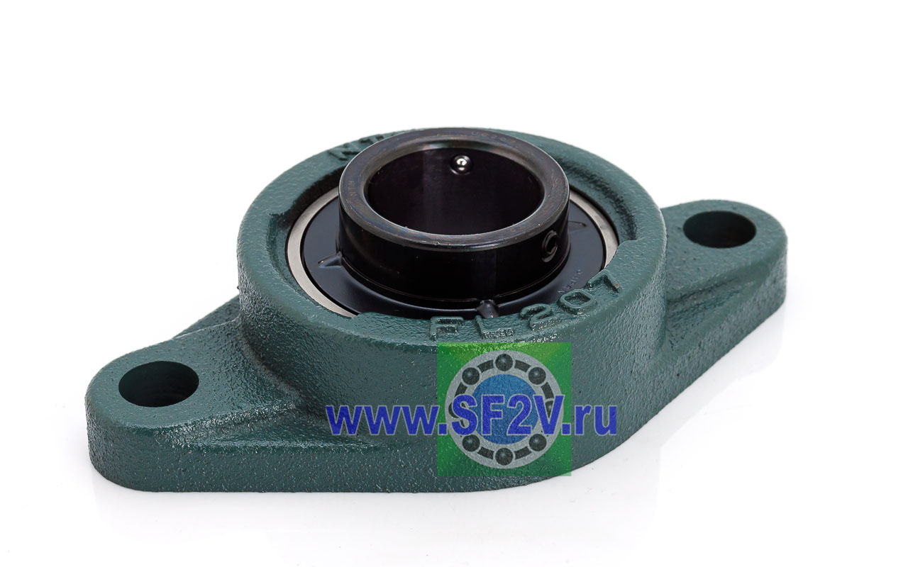 UCFL - Подшипник с корпусом в сборе. Подшипник типа UC и подшипниковый корпус типа FL - не разъемный, стационарный, фланец овального сечения с двумя отверстиями для крепежных болтов, выполненный из литого чугуна, снабжен ниппелем для проведения сервисных работ по замене смазки.
