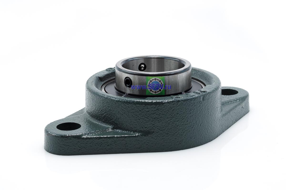 UCFL - Подшипник с корпусом в сборе. Подшипник типа UC и подшипниковый корпус типа FL - не разъемный, стационарный, фланец овального сечения с двумя отверстиями для крепежных болтов, выполненный из литого чугуна, снабжен ниппелем для проведения сервисных работ по замене смазки.