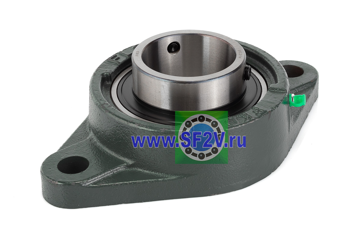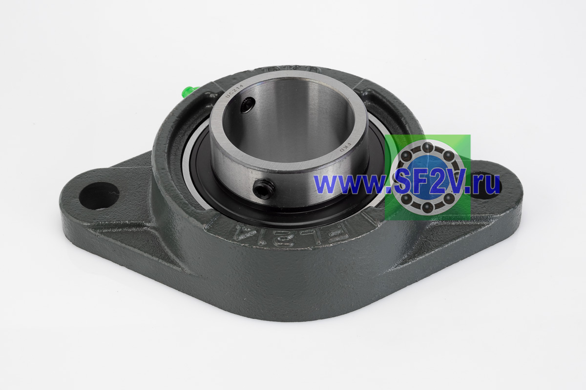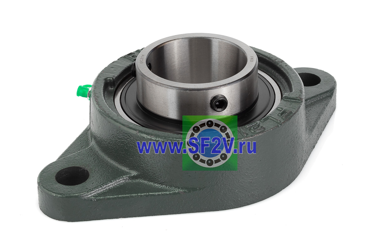 UCFL - Подшипник с корпусом в сборе. Подшипник типа UC и подшипниковый корпус типа FL - не разъемный, стационарный, фланец овального сечения с двумя отверстиями для крепежных болтов, выполненный из литого чугуна, снабжен ниппелем для проведения сервисных работ по замене смазки.