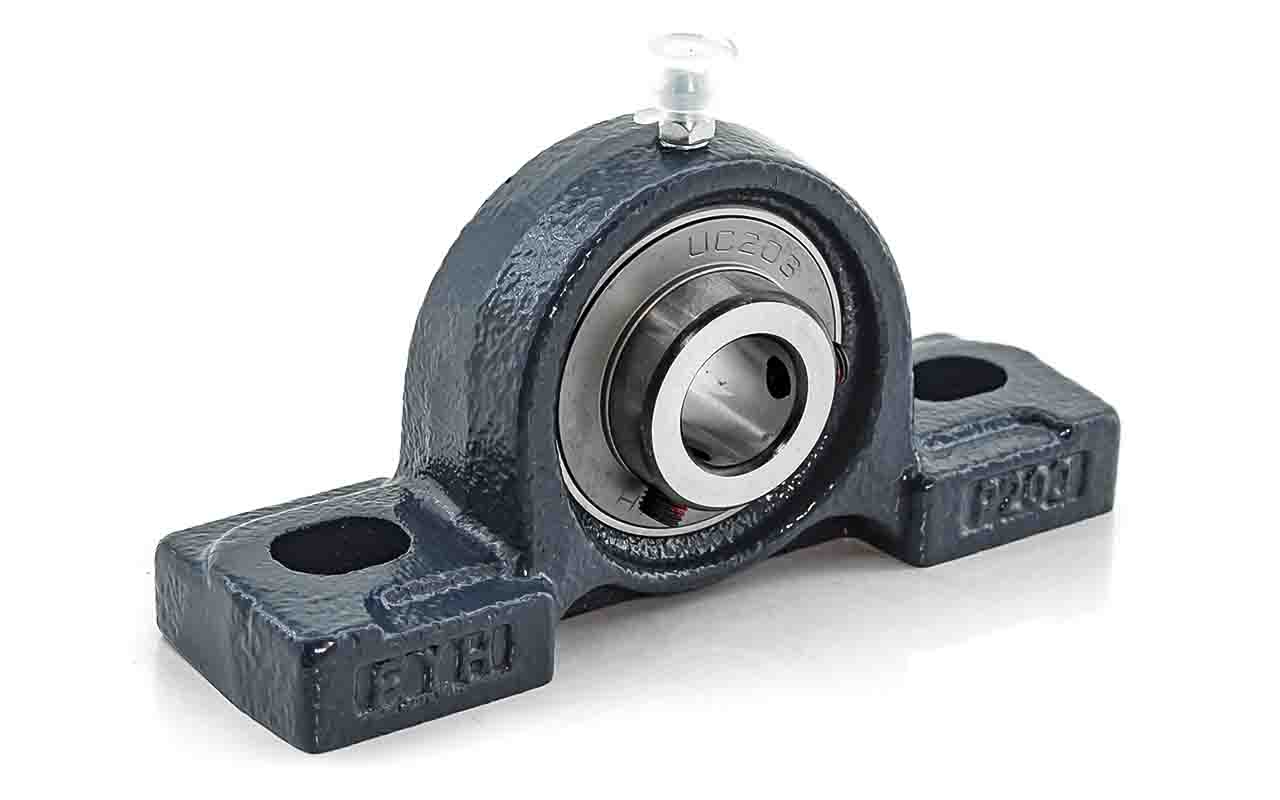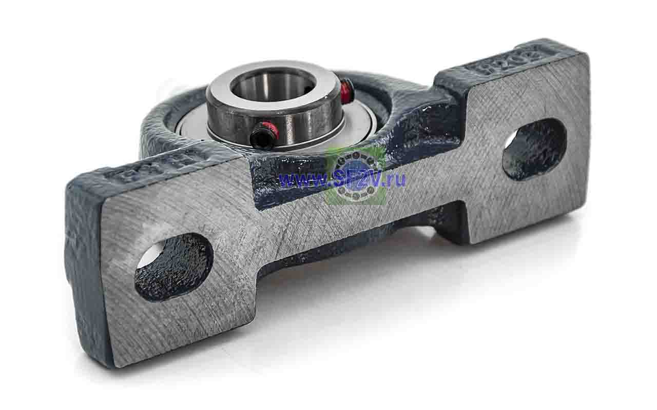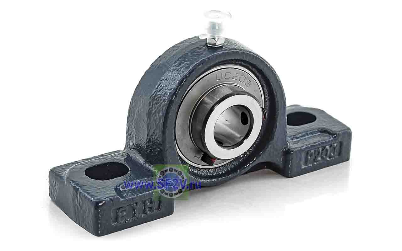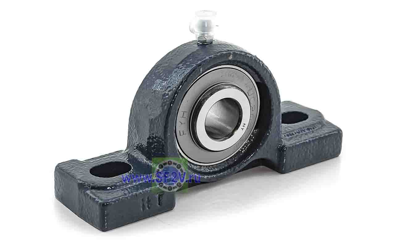 UCP - Подшипник с корпусом в сборе. Подшипник типа UC и подшипниковый корпус типа P - не разъемный, стационарный, фланцевый корпус с двумя отверстиями для крепежных болтов, выполненный из литого чугуна, снабжен ниппелем для проведения сервисных работ по замене смазки.