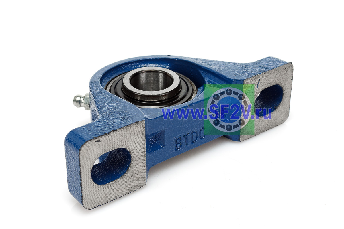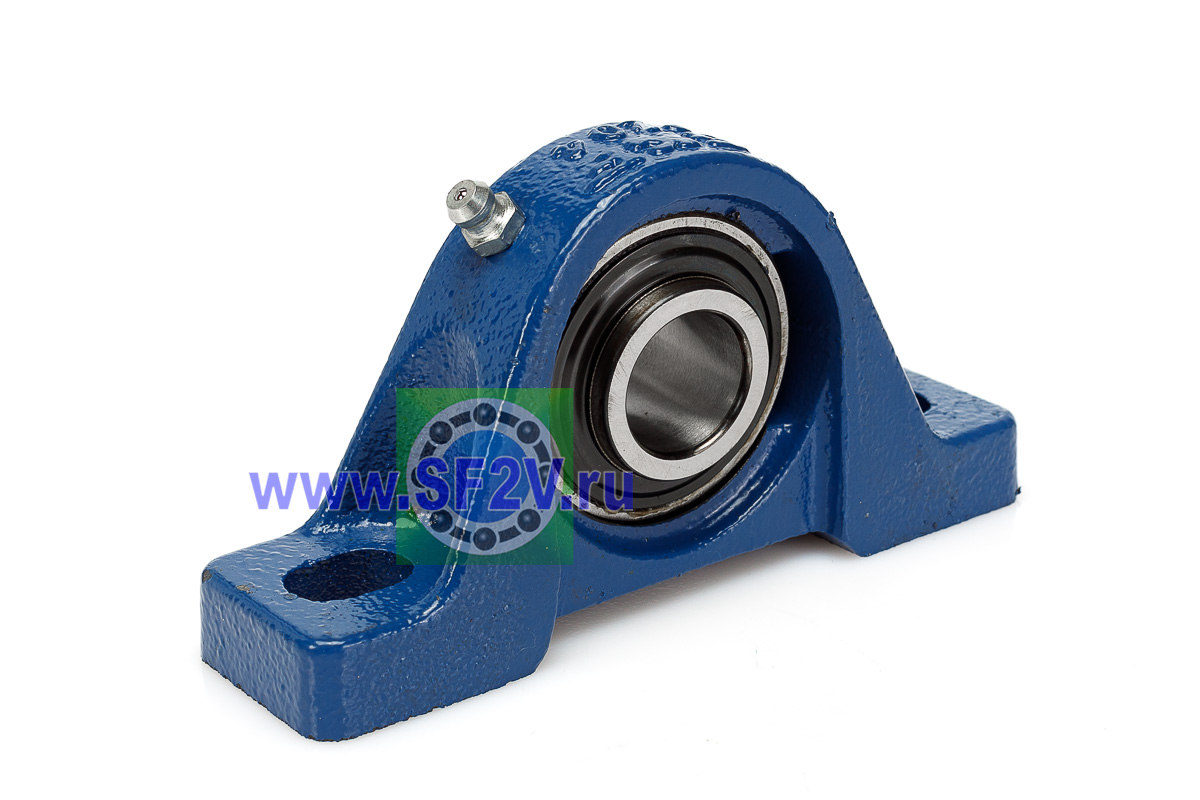 UCP - Подшипник с корпусом в сборе. Подшипник типа UC и подшипниковый корпус типа P - не разъемный, стационарный, фланцевый корпус с двумя отверстиями для крепежных болтов, выполненный из литого чугуна, снабжен ниппелем для проведения сервисных работ по замене смазки.