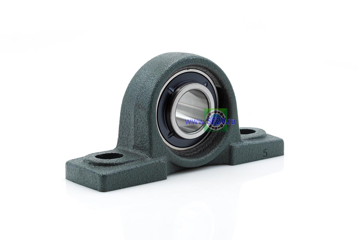 UCP - Подшипник с корпусом в сборе. Подшипник типа UC и подшипниковый корпус типа P - не разъемный, стационарный, фланцевый корпус с двумя отверстиями для крепежных болтов, выполненный из литого чугуна, снабжен ниппелем для проведения сервисных работ по замене смазки.