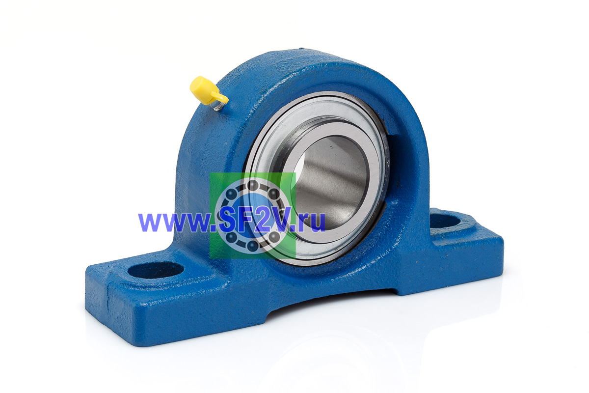 UCP - Подшипник с корпусом в сборе. Подшипник типа UC и подшипниковый корпус типа P - не разъемный, стационарный, фланцевый корпус с двумя отверстиями для крепежных болтов, выполненный из литого чугуна, снабжен ниппелем для проведения сервисных работ по замене смазки.