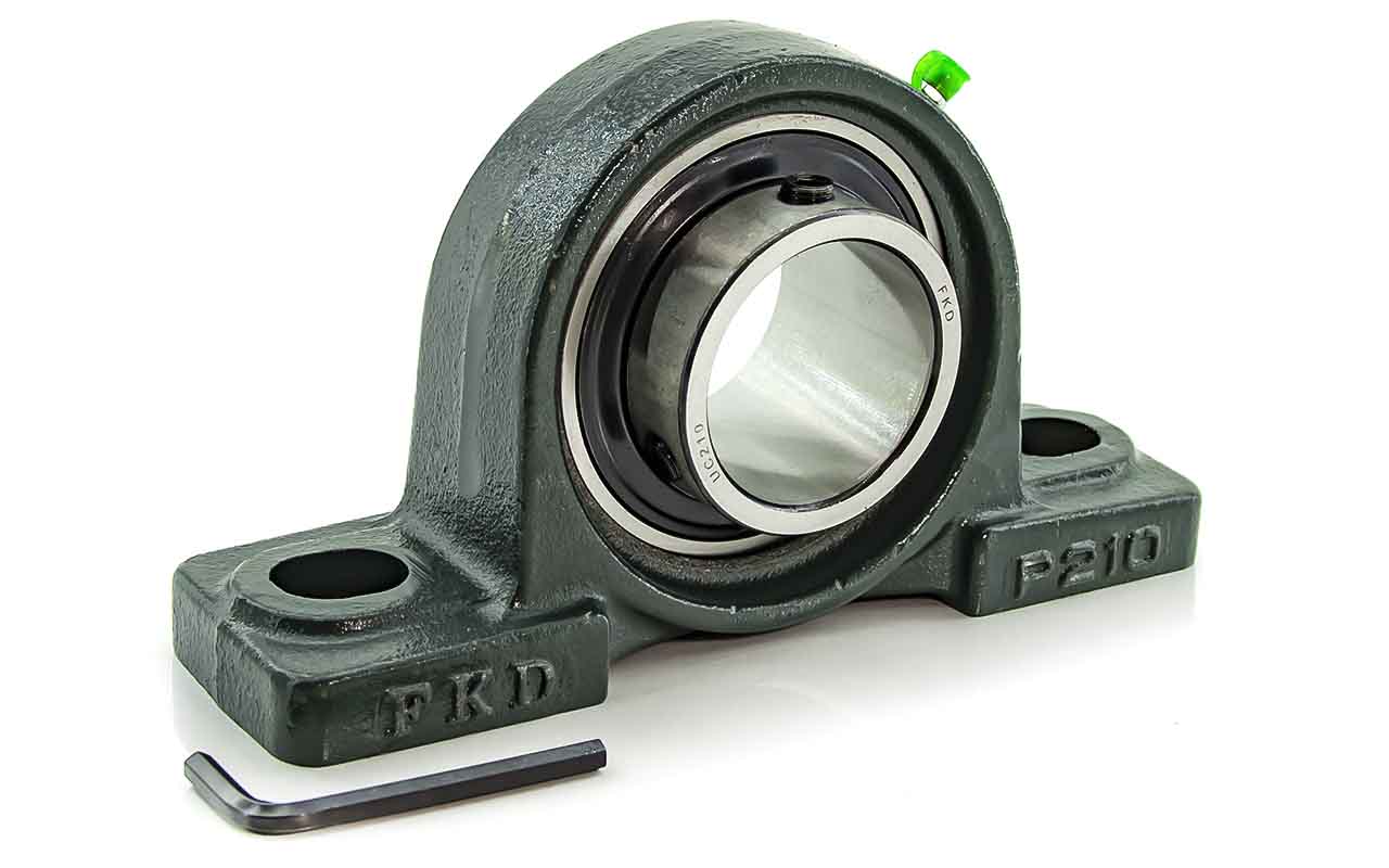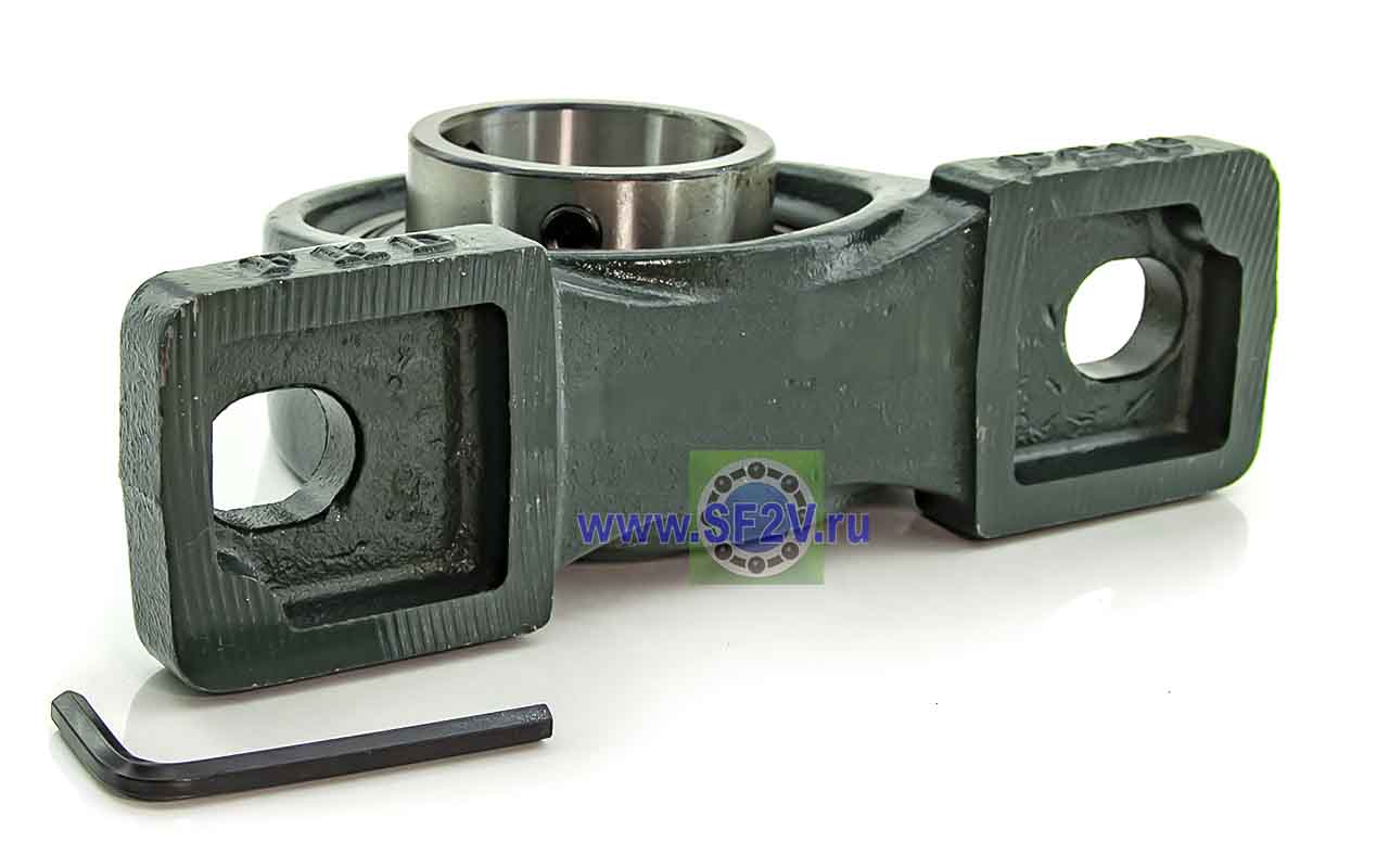 UCP - Подшипник с корпусом в сборе. Подшипник типа UC и подшипниковый корпус типа P - не разъемный, стационарный, фланцевый корпус с двумя отверстиями для крепежных болтов, выполненный из литого чугуна, снабжен ниппелем для проведения сервисных работ по замене смазки.