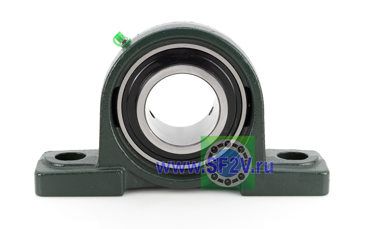 UCP - Подшипник с корпусом в сборе. Подшипник типа UC и подшипниковый корпус типа P - не разъемный, стационарный, фланцевый корпус с двумя отверстиями для крепежных болтов, выполненный из литого чугуна, снабжен ниппелем для проведения сервисных работ по замене смазки.