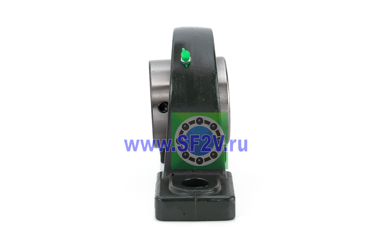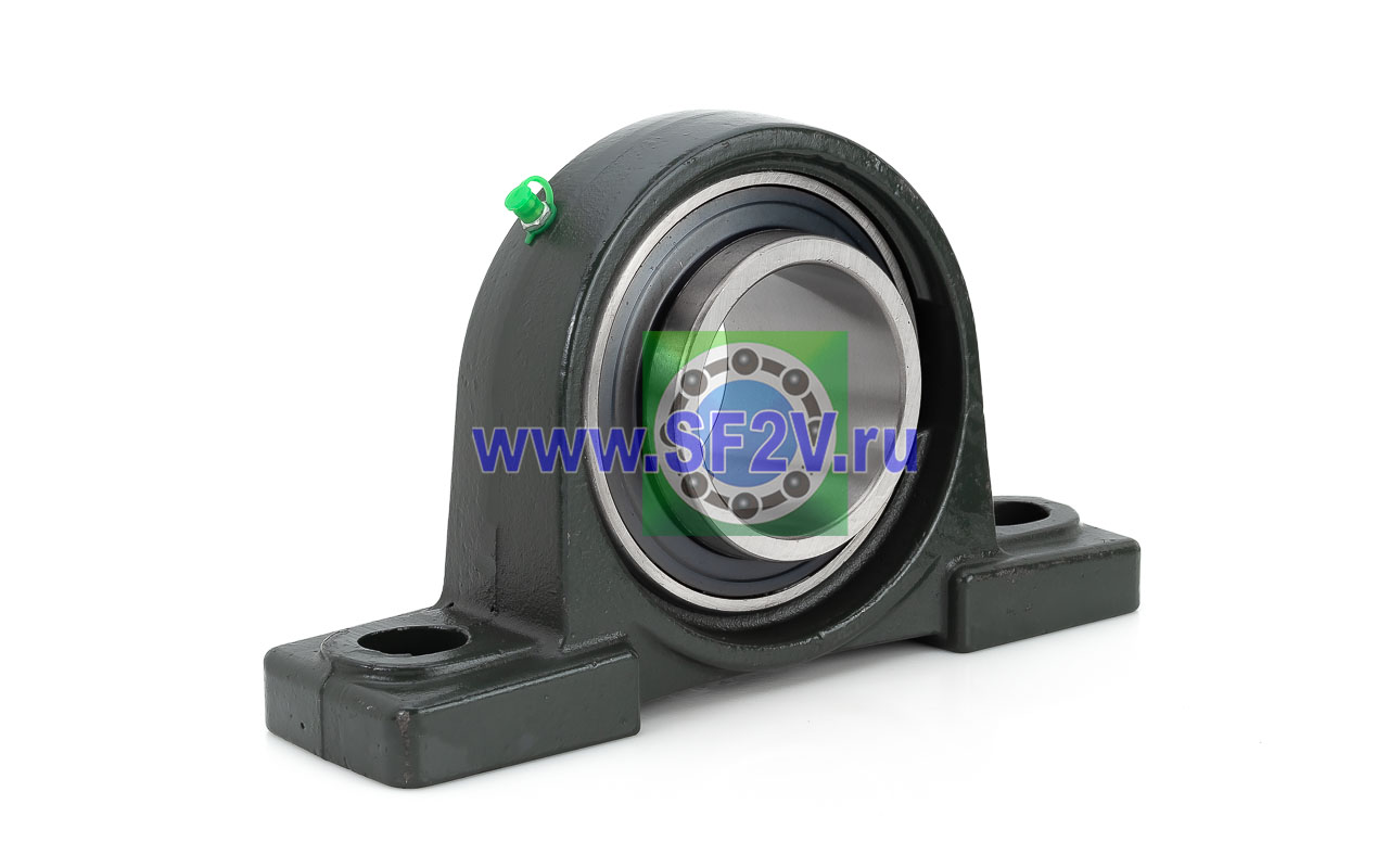 UCP - Подшипник с корпусом в сборе. Подшипник типа UC и подшипниковый корпус типа P - не разъемный, стационарный, фланцевый корпус с двумя отверстиями для крепежных болтов, выполненный из литого чугуна, снабжен ниппелем для проведения сервисных работ по замене смазки.