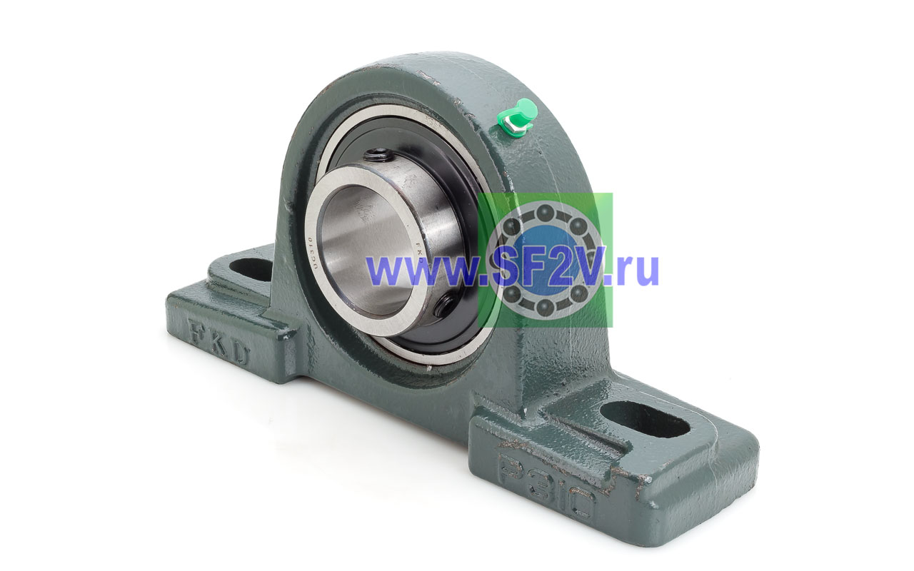 UCP - Подшипник с корпусом в сборе. Подшипник типа UC и подшипниковый корпус типа P - не разъемный, стационарный, фланцевый корпус с двумя отверстиями для крепежных болтов, выполненный из литого чугуна, снабжен ниппелем для проведения сервисных работ по замене смазки.