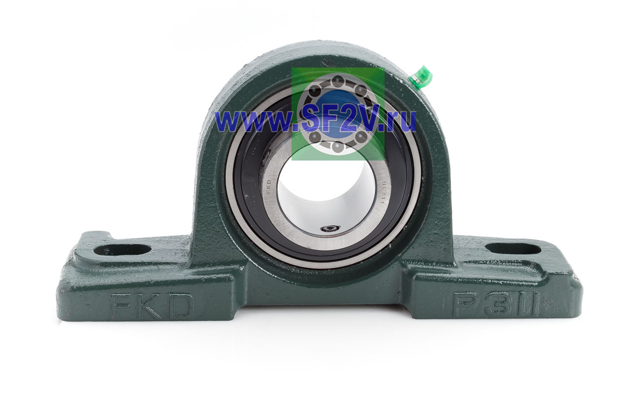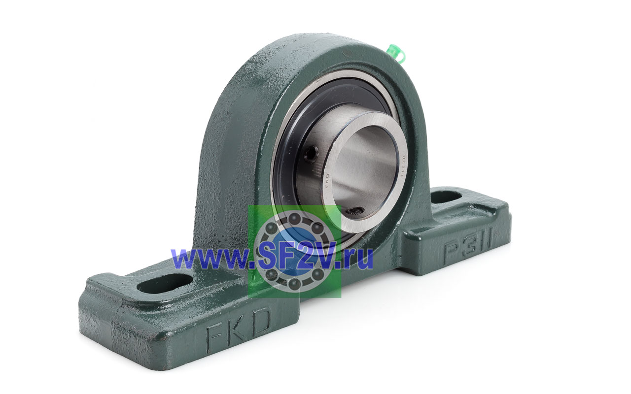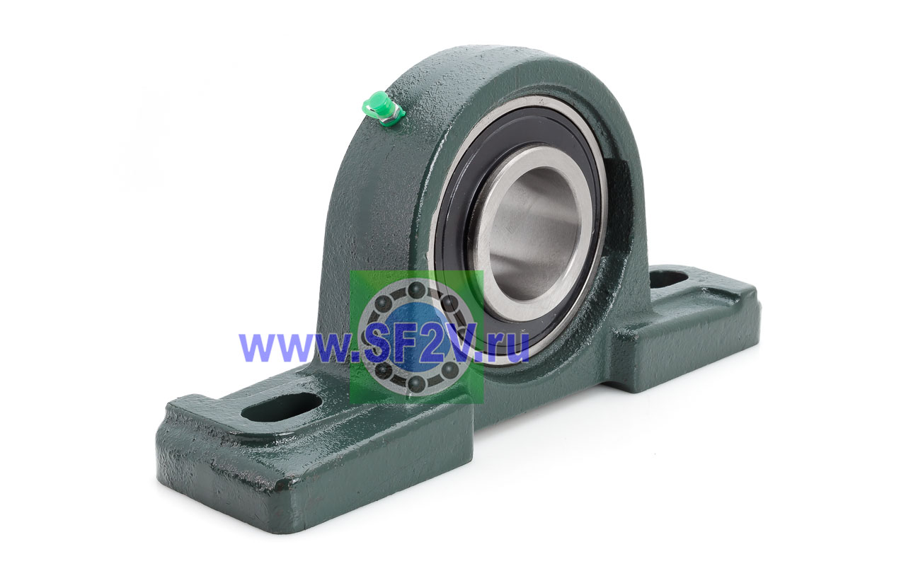 UCP - Подшипник с корпусом в сборе. Подшипник типа UC и подшипниковый корпус типа P - не разъемный, стационарный, фланцевый корпус с двумя отверстиями для крепежных болтов, выполненный из литого чугуна, снабжен ниппелем для проведения сервисных работ по замене смазки.