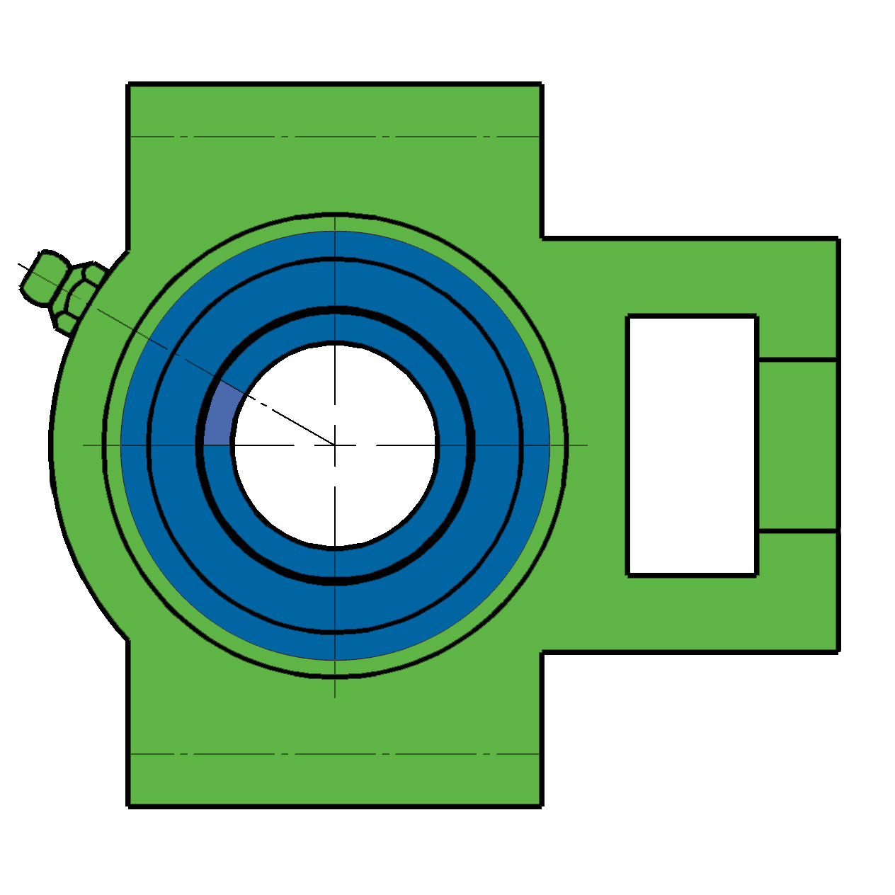 UCT - Подшипник с корпусом в сборе. Подшипник типа UC и подшипниковый корпус типа T - не разъемный, стационарный корпус, снабжен ниппелем для проведения сервисных работ по замене смазки.