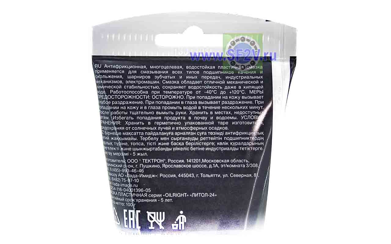 РАЗМЕРЫ И ХАРАКТЕРИСТИКИ Смазка Литол 24 100 г OIL RIGHT